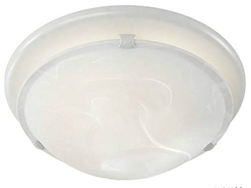 - White finish with White Alabaster glass Close mount design Use two 60 watt incandescent candelabra B10 type bulbs (Bulbs not included.) HVI Certified, UL Listed, Callus Listed Light fixture assembly is plug-in and removable Plug-in permanently lubricated motor Polymeric blower wheel Tapered polymeric duct fitting with built-in back draft damper Sturdy, easy, four-point mounting directly to joist Rugged, galvanized steel housing