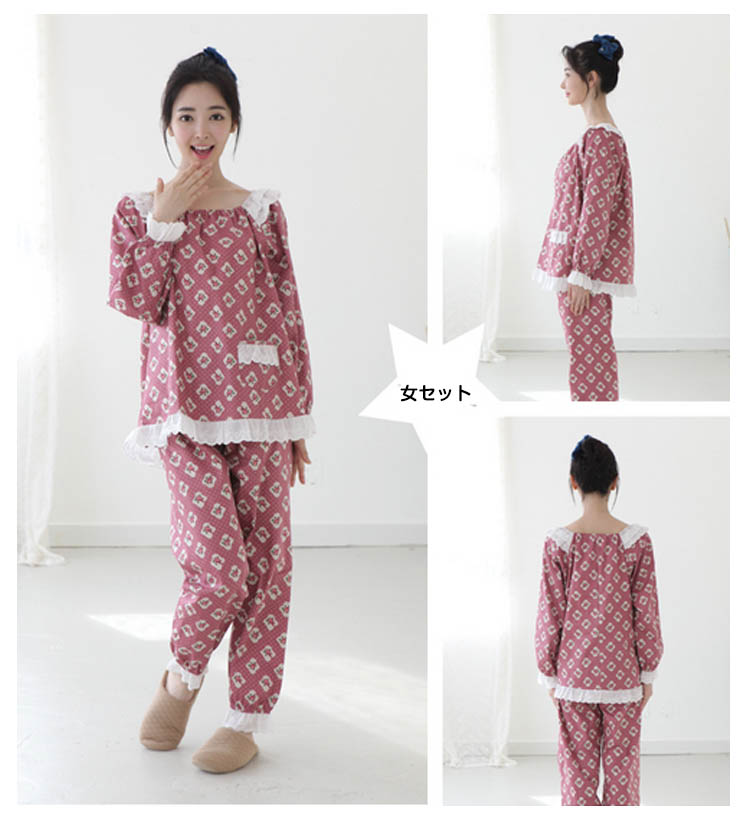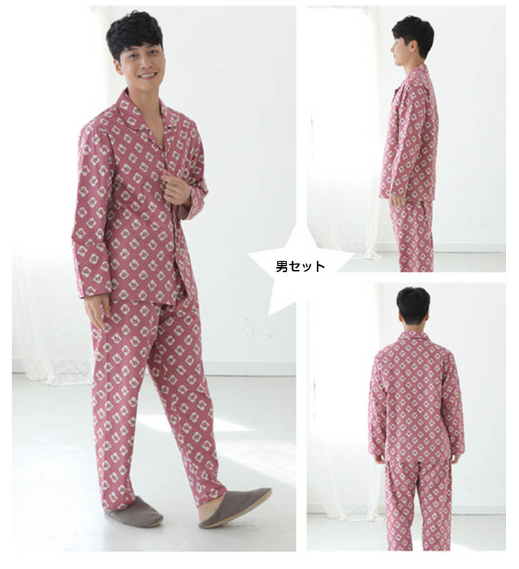 女S トップス着丈64 肩幅31 バスト96 袖丈60 ズボン着丈88M トップス着丈66 肩幅33 バスト100 袖丈61 ズボン着丈91L トップス着丈68 肩幅35 バスト104 袖丈62 ズボン着丈94男L トップス着丈74 肩幅45 バスト112 袖丈57 ズボン着丈98XL トップス着丈76 肩幅47 バスト116 袖丈58 ズボン着丈101XXL トップス着丈78 肩幅49 バスト120 袖丈59 ズボン着丈104単位:cm※上記サイズは平置き実寸になります。サイズ表の実寸法は商品によって2-74cm程度の誤差がある場合がございます。