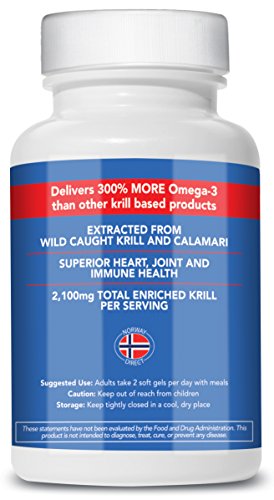 Studies show that krill oil may possess superior absorption dynamics, especially in the absence of food. Our Health experts believe that this occurs because krill oil's phospholipid content create a natural emulsion, which stimulates fat absorption. The addition of Calamarine increases the omega-3 content, and the absorption of the additional omega-3 is enhanced by the krill oil. This is an ideal hybrid. Further, naturally occurring astaxanthin and natural vitamin D3 further support healthy cellular function. Turbo Krill delivers 300% more omega-3 than other krill based products. This is a significant difference when one considers that most health experts suggest a daily intake of at least 1,000mg of omega-3 daily. In the case of standard krill products, this could mean consuming 6-10 softgels per day. Further, krill tends to be higher in EPA (Eicosapentaenoic acid), whereas much of the recent research on omega-3 indicates that DHA (Docosahexaenoic acid) may be more critical for human nutrition. Therefore, high DHA Calamine was chosen to elevate the omega-3 levels.Feature