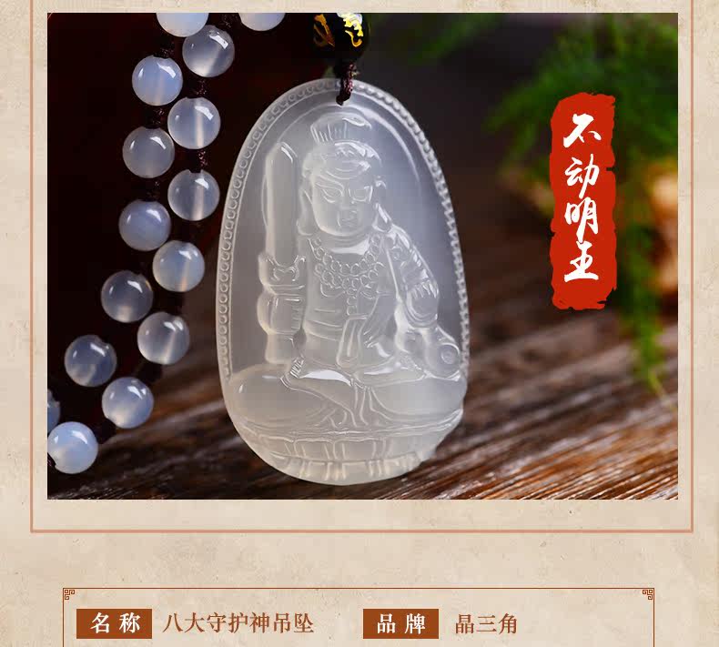 开光 天然白玉髓不动尊菩萨吊坠 不动明王生肖鸡本命佛男女款项链