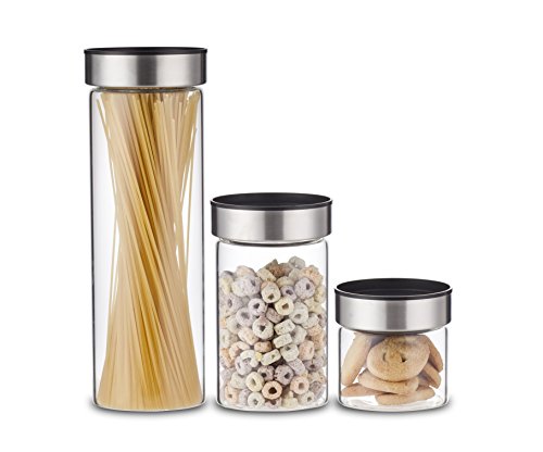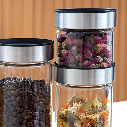 Elemental Kitchen Airtight Glass Jar Food Storage Container Set w/ Stainless Steel Lids - 3 Piece Set
