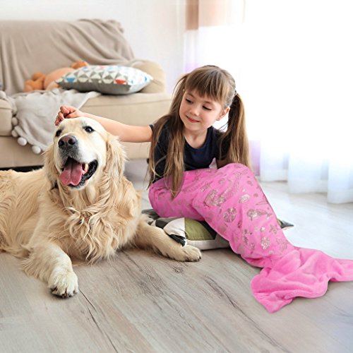 Studio : LANGRIA Publisher : LANGRIA Product Description Beautiful mermaid tail blanket to feel like the Little Mermaid Lovely mermaid blanket for kids with a unique mermaid-and-sea pattern made of glossy golden tiny foil dots that enhances the overall beauty of the blanket. The dots are well-secured to the fabric so that they don't fall easily. The mermaid blanket is made of super soft and fluffy polyester, which is eco-friendly and skin-friendly, which don't irritate children's skin. Your kid will fall in love with it, becoming its favourite toy to feel like Ariel, the Little Mermaid.