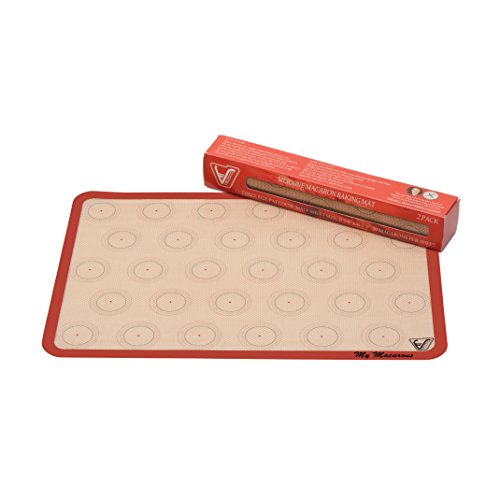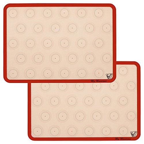 Silicone Macaron Baking Mat - Set of 2 Half Sheet (Thick & Large 11 5/8" x 16 1/2") - Non Stick Silicon Liner for Bake Pans & Rolling - Macaroon/Pastry/Cookie Making - Professional Grade Nonstick