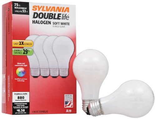Sylvania 50045 Double Life Soft White Halogen 53W Replacement for 75W Incadescent Lightbulbs
