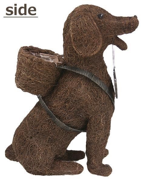 手づくりのアニマルバスケットです。フラワーアレンジメントを楽しんだり、玄関のインテリアとしてもおすすめです!! 製造国:中国 素材・材質:籐 商品サイズ:本体:50×30×78cm、バスケット:Φ17.5×15cm ※サプライヤー直送品【商品名】動物型プランター アニマルバスケット 犬 82-235