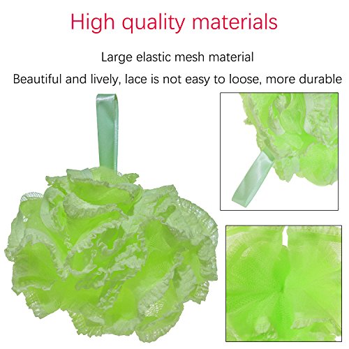 - Practical long ribbon handle, easy hang to dry in bath or shower,lace bath ball's diameter of the lace bath is 15cm, loofah bath sponge's color is bright, beautiful and practical.