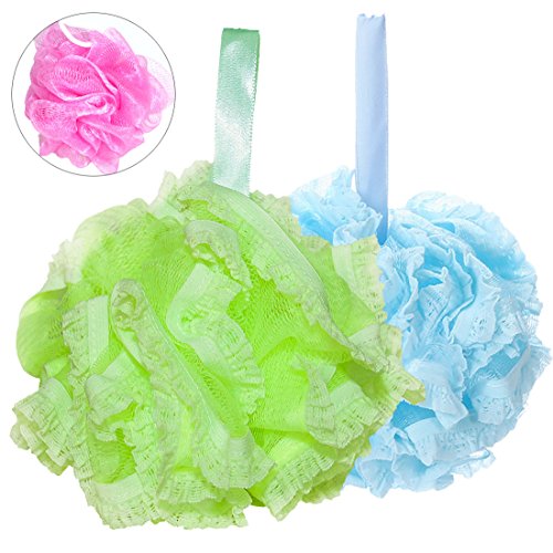 Bath Balls-Fashion Lace Bath Mesh Sponge Balls Lace Decoration Large Mesh Exfoliating Shower Pouf Pack of 2(60g/pcs)