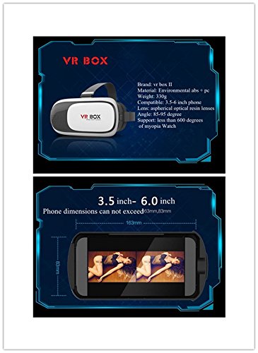 -. Binding : Electronics -. Brand : FUMAT -. Feature : Amazing revolutionary tech, turn your smartphone into a virtual reality viewer. You can experience the immersive, fun and exciting world of VR. Fly through the Grand Canyon, play 3D games, travel the city streets of Paris or become a character in an animated film. / Compatible with Android and iphone with 3.5-6.0 inch screen, more than 300 virtual reality apps on Apple App Store and Google Play Store for you download to enjoy shocking 3D effect. / The T-shaped straps make it adjustable for different people. Its design can also help decrease the pressure on around your eyes so you will feel much more comfortable when enjoy the movie or game; Simulating Viewing Distance: Offer you a 1000 inches big screen at the distance of 3m; Offers you super 3D picture effect and wonderful feeling / Easy to put your smart phone into the 3D GLASSES - Easily pull the smart phone storage box out, the put your smart phone in it. Perfectly suitable your face when you wear the 3D VR GLASSES; It is perfect for people with myopia under 600 degreed. You can get free from your glasses while enjoy the 3D movies or games with the virtual reality glasses, bringing you better experience / Adjustable pupil distance and sight distance (adjustable on pupil distance and object distance), satisfying different groups of people. - Optical Axis Sliding Control function: You can slightly adjust the position of the spherical resin lens through moving the button on the top of the 3D VR GLASSES so as to get a better experience of watching movies. You can get a viewing angle of between 95 to 100 degrees -. Label : FUMAT -. Manufacturer : FUMAT -. MPN : FUMATVR16090503 -. PackageQuantity : 1 -. PartNumber : FUMATVR16090503 -. ProductGroup : Speakers -. ProductTypeName : CE_ACCESSORY -. Publisher : FUMAT -. Studio : FUMAT -. Title : FUMAT VR Box II 3D Glasses VR Glasses Google Cardboard Virtual Reality VR Box 2.0 Oculus Rift VR Glasses With Bluetooth Handle