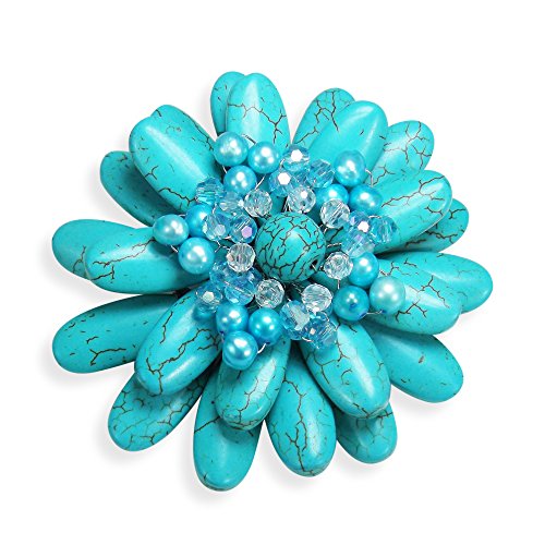 Local Aeravida artisan Jib handcrafted this exquisite floral pin or brooch. This ultra modern pin or brooch features an exotic water lily made with simulated turquoise and cultured freshwater blue pearls (dyed). An exotic, versatile piece that will turn heads wherever you go. PLEASE NOTE: The handcrafted nature of this product will produce minor differences in design, sizing and weight. Variations will occur from piece to piece, measurements may vary slightly.Includes an original AERAVIDA organza jewelry pouch (comes in various colors), also handmade by our Artisans. Perfect for gift giving to someone special or keep for yourself!