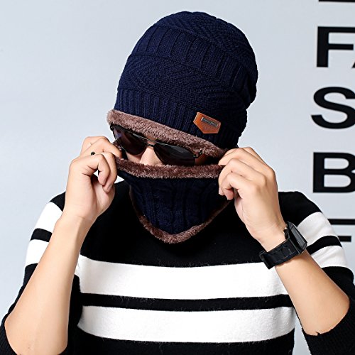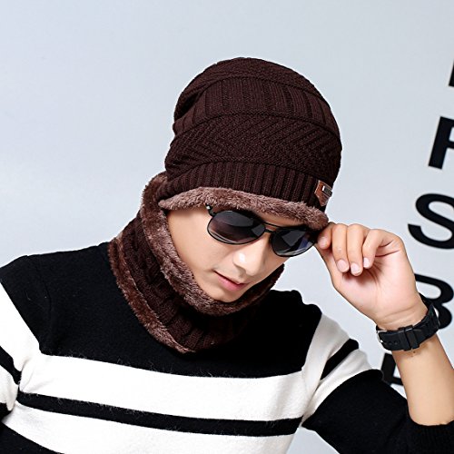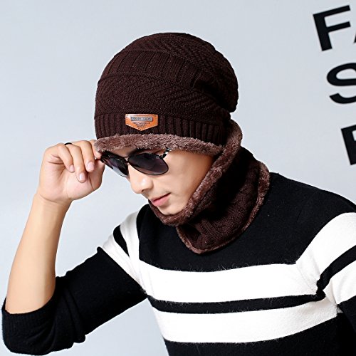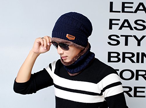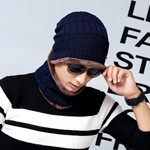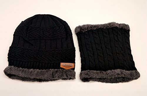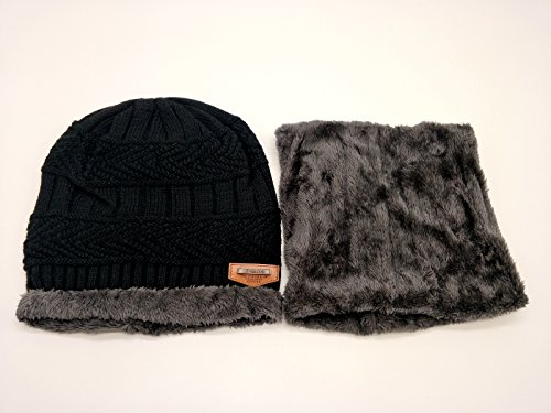 Feature: Material: Acrylic knit fleece lining Gender: male Season: autumn and winter Size: cap 10.2'*9.8'(L*W); scarf 9.4'*8.7'(L*W) Circumference: 22'-23.6'(one size fits most)