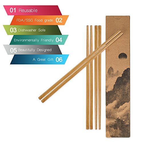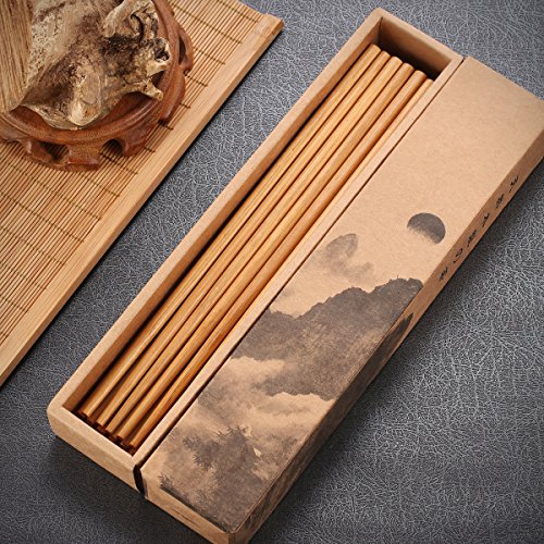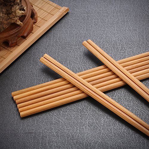 SIZE:10 pairs natural bamboo chopsticks,an ecologically green alternative to wood; Healthy, strong, dense and versatile, won't swell or absorb water, good for health.