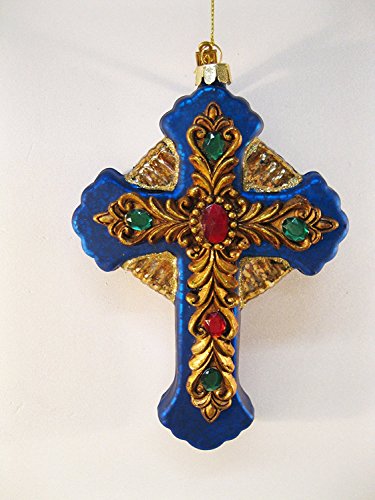 Christian Christmas Glass Jeweled Cross Ornament by Katherine's (BLUE)