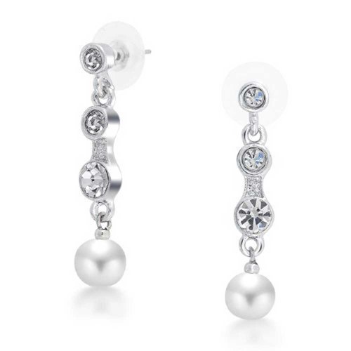 Material: Rhodium Plated Base Metal, Simulated Pearl, Crystal Measure: Necklace: 16 inch L x 1.3 inch W, Earrings: 1 inch L x 0.6 inch W