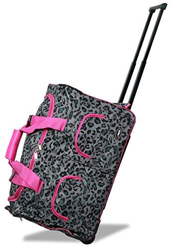 -. Title : Dejuno Grey Cheetah Fashion Print 22" Rolling Duffel Bag