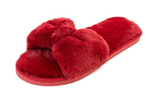 -. Feature : Rubber outsole with great traction and duration / These slippers are trendily adorned with a pattern and a beautiful bow design, which is full of vitality and fashion. / Gorgeous Open Toe Slippers With Pretty Faux Fur / Fleece insode naturally wicks away moisture, keeping feet warm and dry. / Stylish for Outdoor and Indoor, soft and supportive midsole provides arch support and cushioning, prevent and relieve foot pain, great for wearing all day long.
