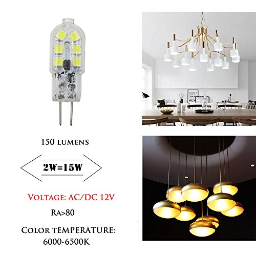 - √● HIGH PERFORMANCE: AC/DC 12V output, Not-Dimmable bulb with G4 base, SMD2835 12 LEDs, can reach 150 lumens
