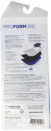Studio : Spenco Publisher : Spenco Binding : Health and Beauty Product Description This proud count is an ultra-thin gel insole with fluid exible arch support. For athletes looking for fluid exible gel support who participate in a variety of physical a countivities and consumers seeking fluid exible gel support and motion control. Recommended for low-volume daily or athletic wear to absorb shock and reduce foot fatigue. This is great for workers who need low-volume shock absorption, cushioning and maximum toe room in tight fitting footwear, or working on hard surfaces. It is unconditionally guaranteed for one full year. 0