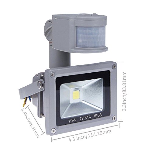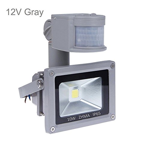 [New Design] ZHMA 12V 10W Motion Sensor Flood Light,Outdoor LED Flood Lights,Smart PIR Outdoor Security Floodlight ,700lm, 100W Equivalent Bulb, Basement Light,6000K Daylight White