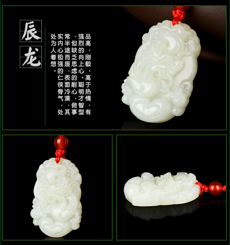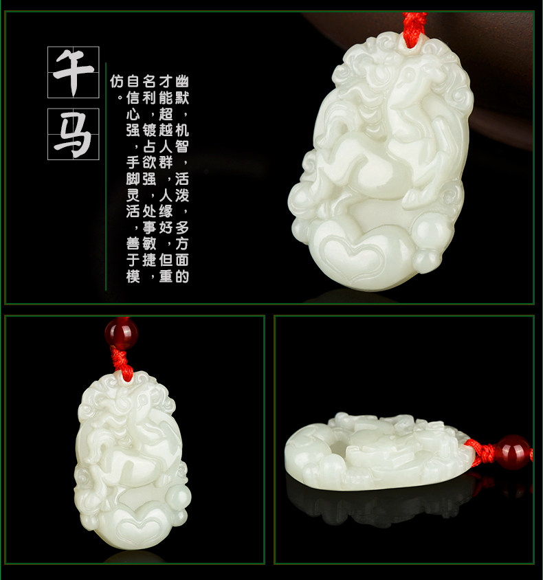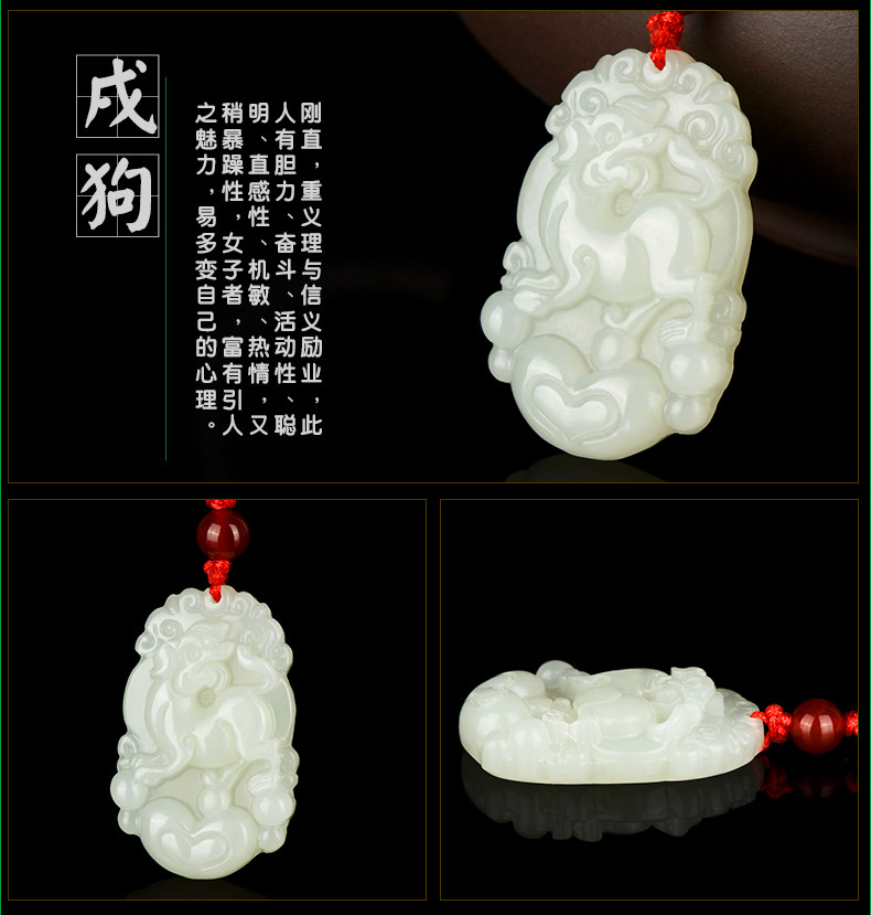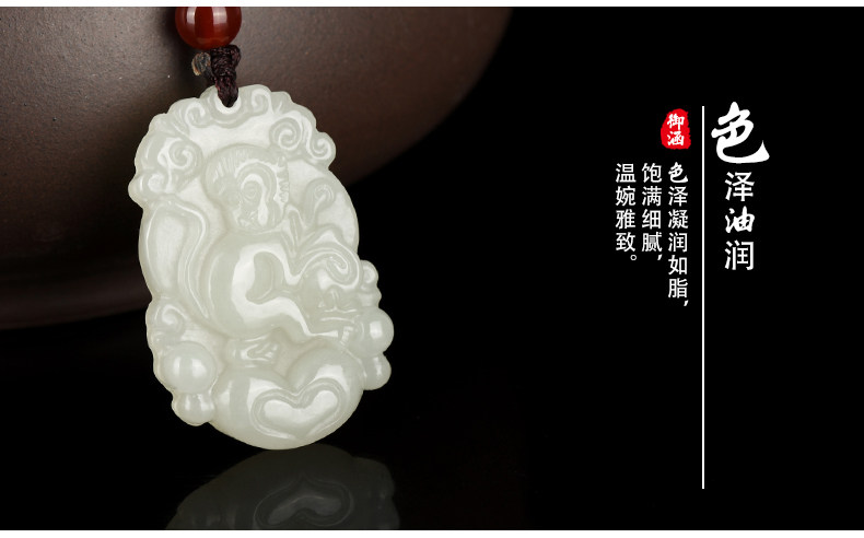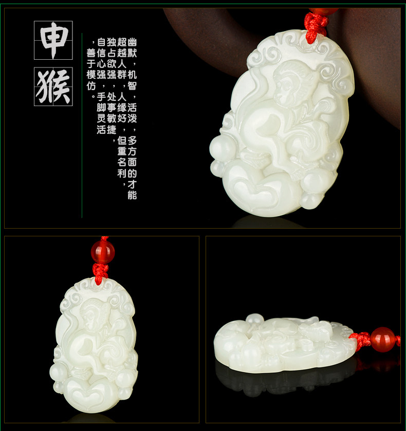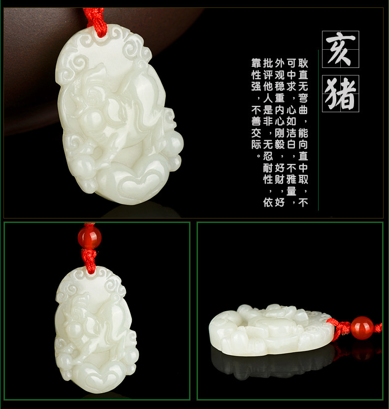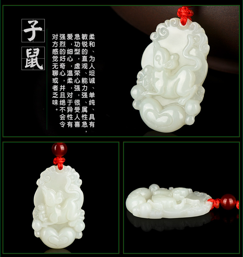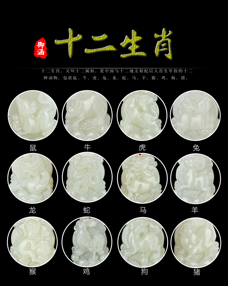 天然和田玉吊坠十二生肖白玉吊坠玉牌男女款鸡猴玉石项链挂件