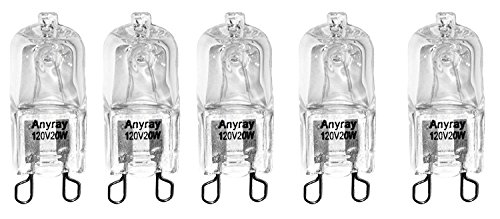 - (5)-Pack 20 Watt G9 T4 20W Clear Halogen Bulb Bi Pin 120 Volt Halogen 20Watt Anyray® # A1712S