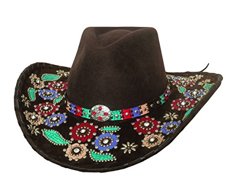 Studio : Bullhide Hats Publisher : Bullhide Hats Binding : Apparel Product Description Add a unique, colorful flare to your outfit when you have this stylish hat from Bullhide. This hat from Bullhide is made with premium wool, has a pinch front crown, a leather band with multiple colors, and a center silver toned concho design. Saddle up, grab your favorite hat from Bullhide, and hit the trails. 0