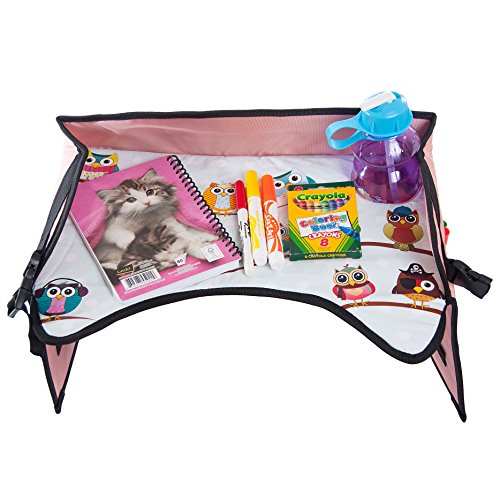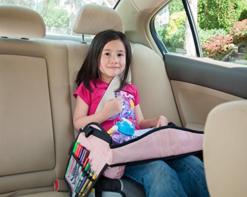 Children's Travel Tray Kids Play Tray for Snacks Car Bus Train Plane Boat Trips Riding in Cars Backseat Car Organizer, Lap Tray Writing Surface for Kids Age 3+ (pink)