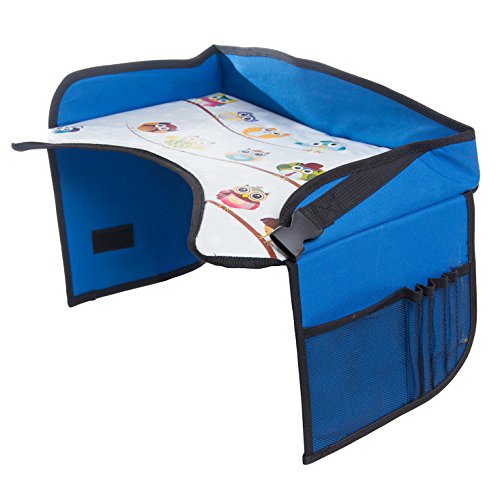 Children's Travel Tray Kids Play Tray for Snacks Car Bus Train Plane Boat Trips Riding in Cars Backseat Car Organizer, Lap Tray Writing Surface for Kids Age 3+ (blue)