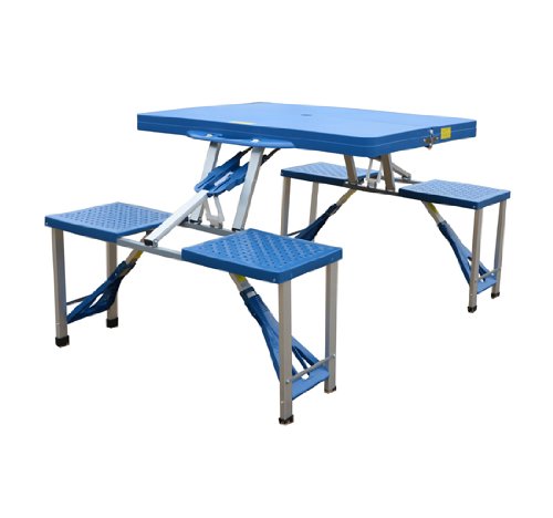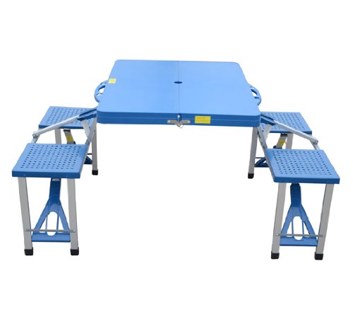 Studio : Aosom Direct Publisher : Aosom Direct Binding : Sports Product Description If you plan on spending hours in the sun, make sure you have a place to sit. This folding table is ideal for outdoor picnic or garden use and is great for whenever you need an extra table and seats. The table features a compact fold-out table with bench seats for four that you can take anywhere. It can be folded into an easy-to-transport suitcase-size when collapsed to make storage quick and easy. The compact storage size and ability to be set up anywhere make this table a must have for enjoying the fun in the sun Features: - Easy wipe table top - Quick set-up - Lightweight - Heavy-duty, high impact plastic - Folds compactly for easy storage or transport - Constructed of black ABS plastic, it has an aluminum alloy frame for durability - Tilt and lock - Durable high impact plastic table top - Seating for 4 adults - Reinforced seat structure - Combination of aluminum and steel parts for lighter weight and stronger construction Dimensions: - Material: ABS table, PP seat Aluminum legs - Tabletop size: 33 1/2"L x 25 1/2"W - Seat size: 11 5/8"L x 10 3/8"W x 15 3/4"H - Table bracket: 5 7/8"L x 11 7/8"W x 0.66MM - Legs: 5 7/8"L x 11 7/8"W x 0.66MM - Umbrella hole diameter: 1" - Maximum weight capacity for table: 66 lbs. - Maximum weight capacity for seat: 265 lbs. - Net Weight: 15 lbs. 0
