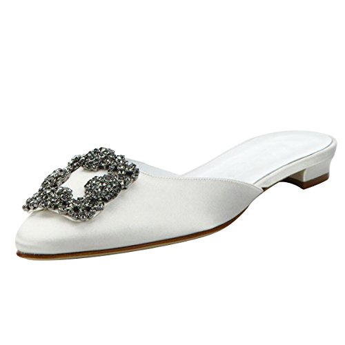 -. Title : Mavirs Mule Slippers For Women, Womens Satin Rhinestones Flat Sandals Pointed Toe Jeweled Embellishment Slides Sandals