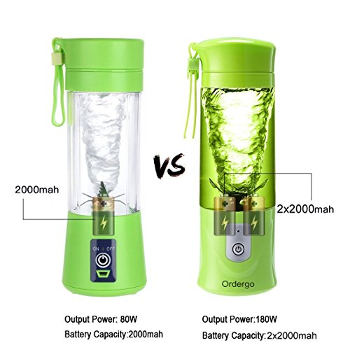 4.HIGH VOLUME & HIGH BATTERY CAPACITY:14.3 Oz bottle and 2x2000mAh built-in batteries, can be juicing 20 times with a full charge. More than other brand only one 2000mAh battery.