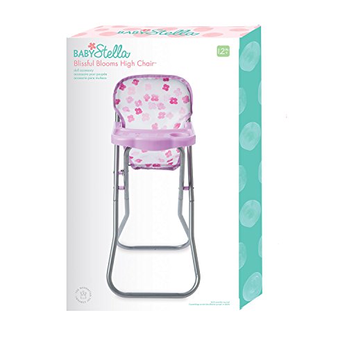 - Collapsible metal frame supports fabric chair that holds 1 Baby Stella doll, with adjustable feeding tray