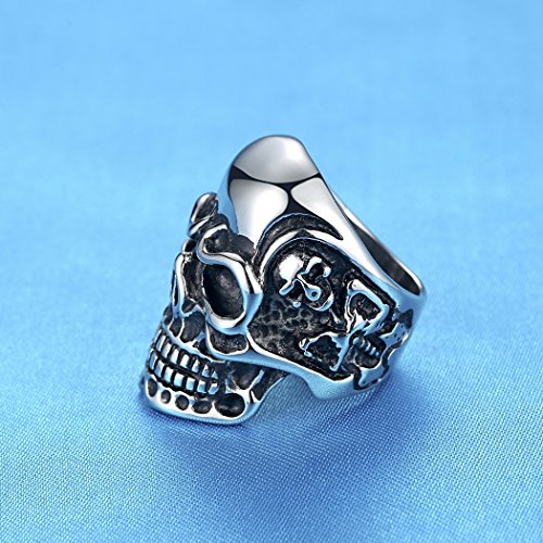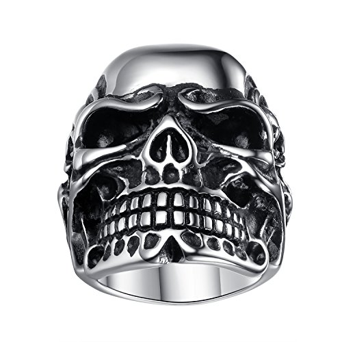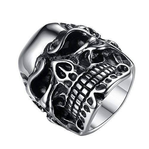 -. Title : LineAve Men's Stainless Steel Gothic Punk Skull Biker Ring, Size 7 - 15