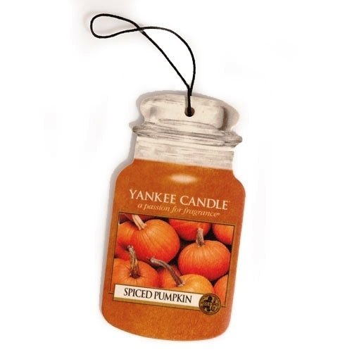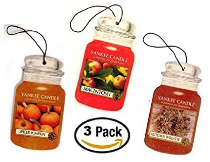 Yankee Candle FALL FAVORITES Paper Car Jar Air Fresheners ; Autumn Wreath, Macintosh, and Spiced Pumpkin. - Set of THREE Car Jars