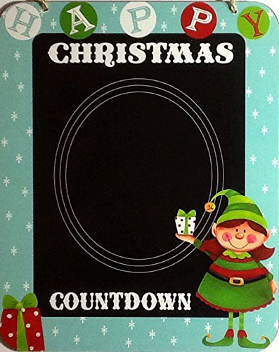 Christmas Holiday Countdown ~ Wall Hanging Decorative Chalkboard ~ 9 1/2" X 7 3/4" Alternative Advent Calendar ("Happy Christmas")
