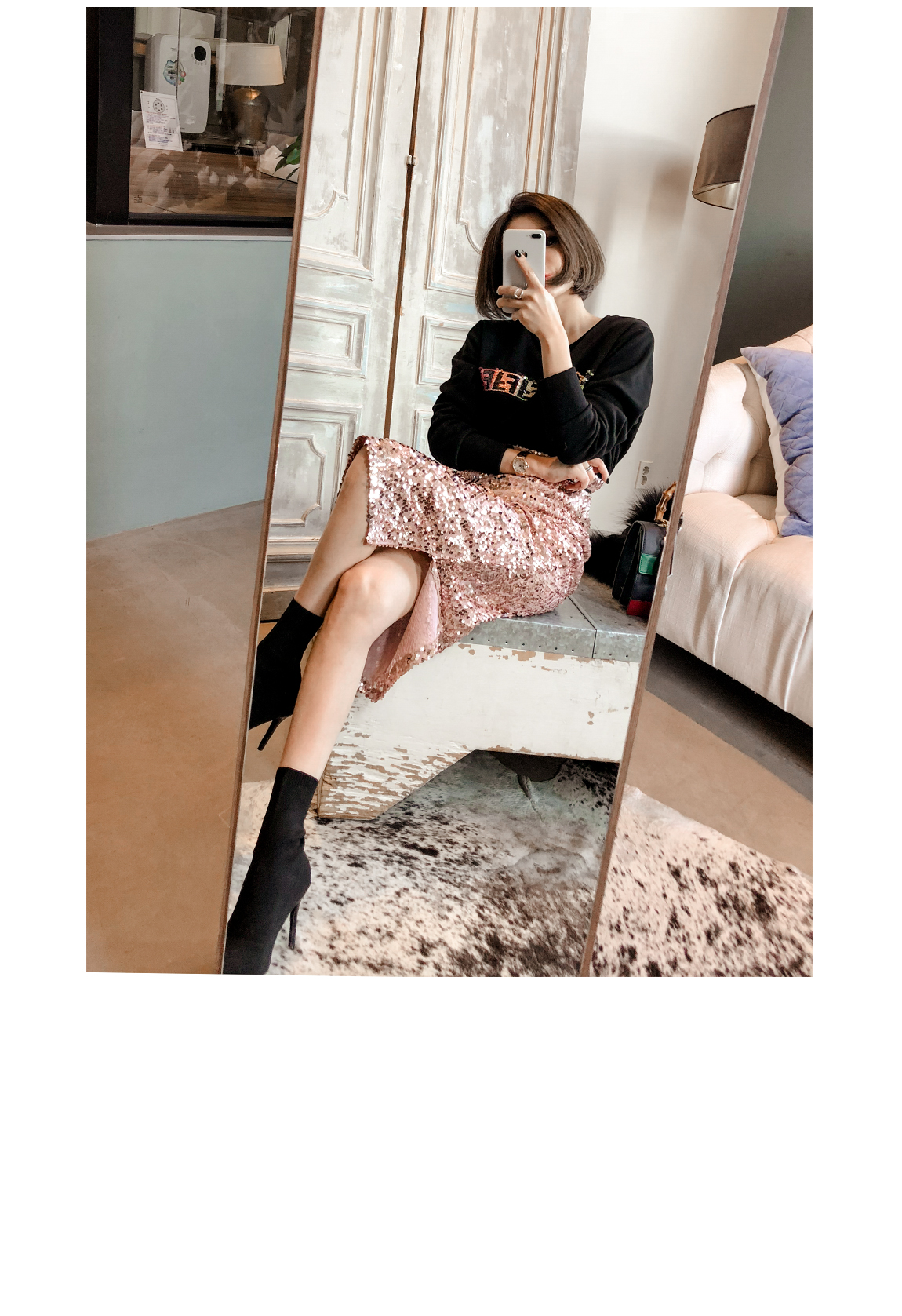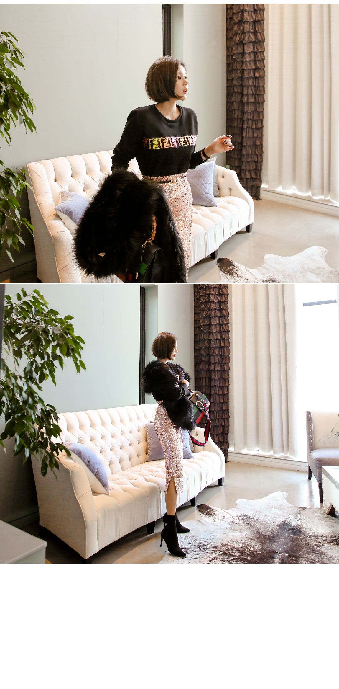 「(ピンク)スパンコールアップスカート」