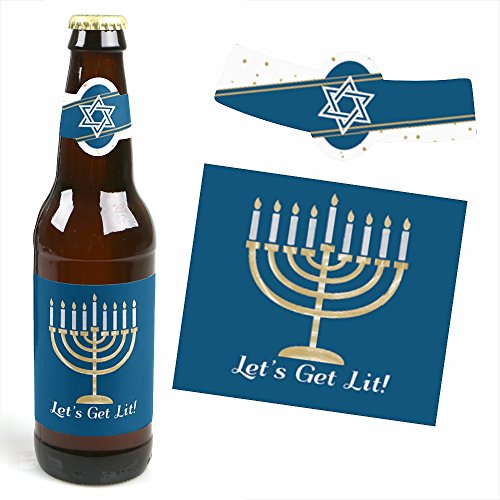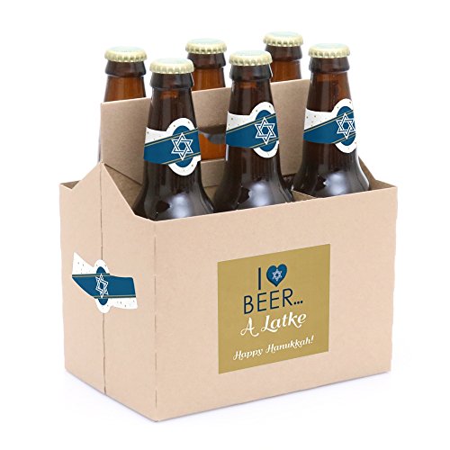 Happy Hanukkah - 6 Chanukah Beer Bottle Labels with 1 Beer Carrier