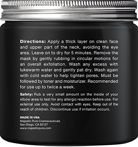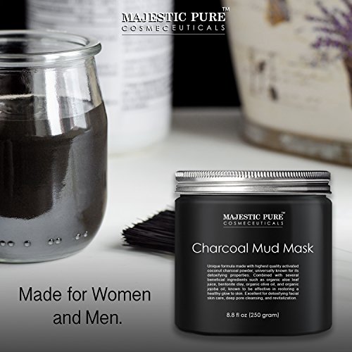 Majestic Pure Activated Charcoal Mask, a unique formula made with highest quality activated coconut charcoal powder, universally known for its detoxifying properties. Combined with several beneficial ingredients such as organic aloe leaf juice, bentonite clay, organic olive oil and organic jojoba oil, known to be effective in restoring a healthy glow to skin. Excellent for detoxifying facial skin care, deep pore cleansing, and revitalization. Works well on all skin types.