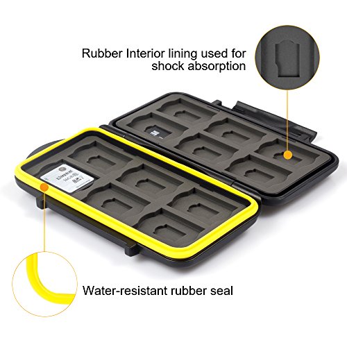 Kupton K020 memory card case is a rugged, water-resistant protection box. It's made of polycarbonate and extremely shock resistant. It can effectively protect against damage from water, sand, dust, etc. As the newest upgraded version, all together you can put 24 pieces of memory cards in this case, including 12 pieces of SDHC / SDXC cards and 12 pieces of micro SD cards.