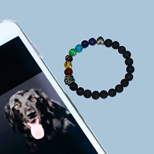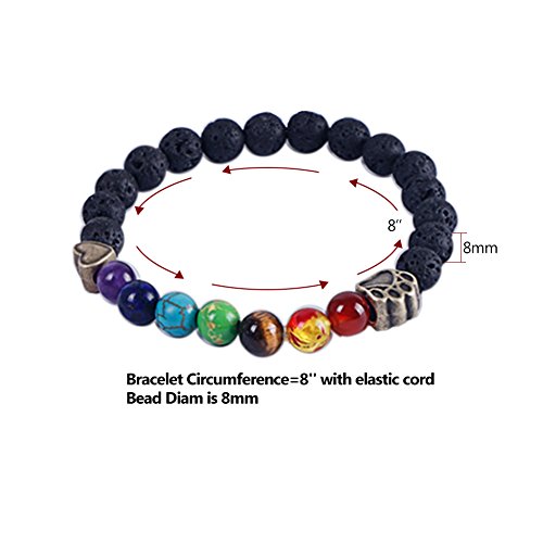 - ♥ Vintage Look for Memory: 8mm Lava Stone Bead in Stretch Cord with 15 Black Lava Beads,7 Rainbow Gemstones Beads,1 Paw Print Bead, 1 Heart Print Bead. All Beads in Approximate 8mm Diam