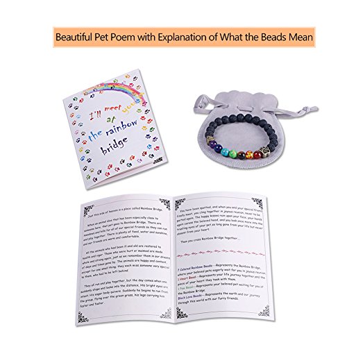 Pet Memorial Bracelet Gift-Rainbow Bridge Nature Lava Bead Bracelet in Loving Memory of Your Beloved Pet Dog Cat
