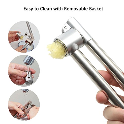 - PRESS UNPEELED GARLIC: Thanks to the heavy duty construction and ergonomic design of garlic mincer, you can easily mince both unpeeled and peeled garlic cloves. What's more, there is next to no waste: garlic comes out, peel stays in.