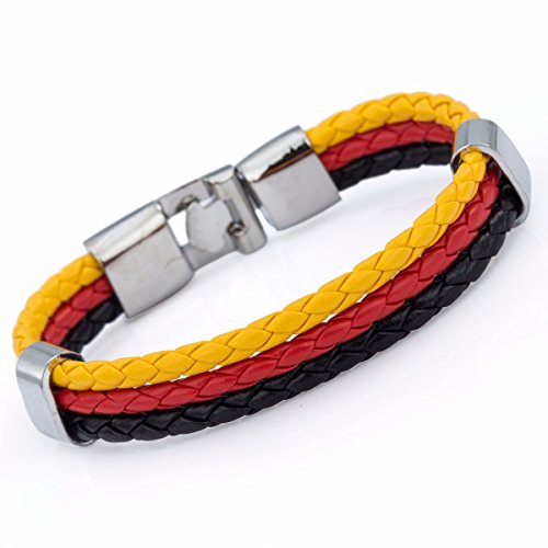 -. Title : Davieslee メンズ レディース 3本 ロープ 編み込み レザー ブレスレット ステンレス ドイツ 国旗 黄赤黒 12mm