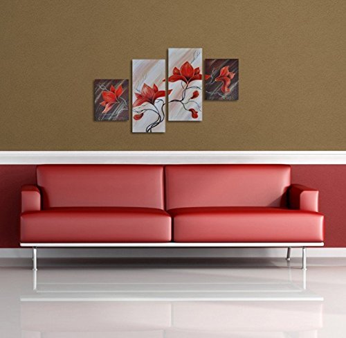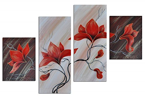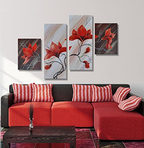-. Title : Noah Art-Modern Floral Art, 100% Hand Painted and Stretched Abstract Painting of Flowers on Canvas Wall Art, 4 Piece Framed Rustic Home Decor Flowers