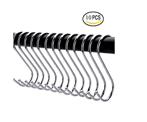 Premium Larger Round S Shaped Stainless Steel Hanging HooksSet With 10 Hooks - Ideal for Kitchen, Bathroom, Bedroom and Office (medium)
