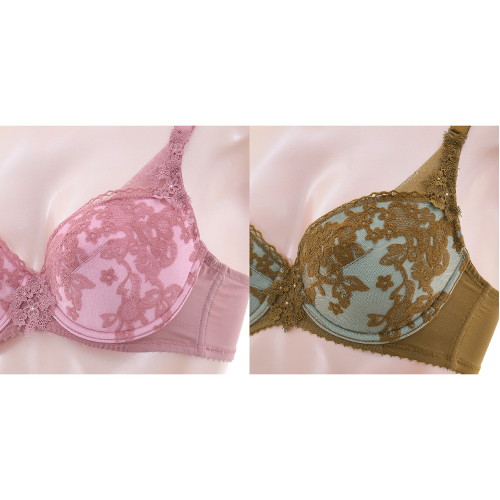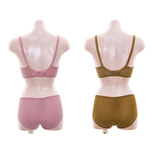 섬세하고 시스루한 망위에 플랫한 자수가 레이시 하면서 도 부담스럽지 않은 실루엣을 연출합니다.카키에 블루 레인지 매칭이 트렌디 하고 감각적이며 핑크에 살짝 비 쳐 올라오는 바이올렛 역시 여성스럽고 신비로움을 선사 합니다. 3t 두께의 패드에 전중심이 높은 플컵 설계로 편 안하고 안정감 있는 피팅감을 줍니다.