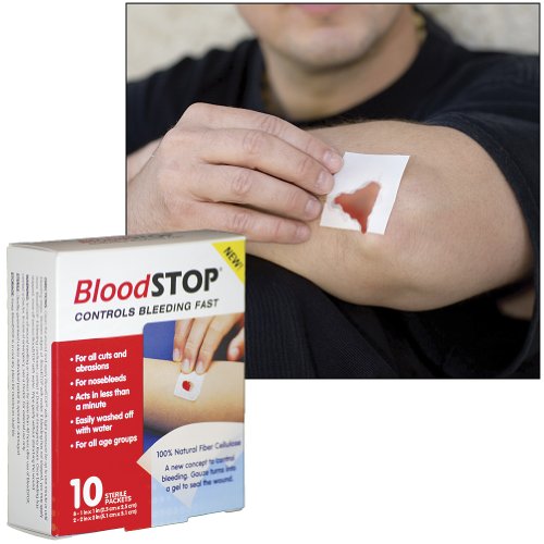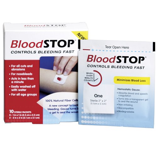 -. Feature : Quickly absorbs blood, transforming into a gel to seal wound with a protective, transparent layer. / Non-irritating, water soluble gel can be rinsed off without disrupting the clotted surface. / For all skin abrasions and cuts, even nosebleeds. Easy to cut, pack or layer. / Each box contains 10 sterile packets; set of 4 boxes. / 32, 1"x1" squares and eight 2"x2" squares.