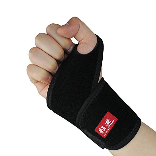 -. Brand : Kuangmi -. Color : Black -. Department : Boys -. EAN : 0602130147428 -. Feature : This brace is sold by 1 pair ( Pack of 2) / INJURY SUPPORT: Perfect support for sports injuries, carpal tunnel, tendonitis and more / Variable compression allows for a custom, perfect fit / Stretches in four directions to provide comfortable compression and support for weak or stressed wrists / Ideal for acute and chronic wrist injury protection and recovery. Helps reduce pain from tendon and joint inflammation -. Label : Kuangmi Sports -. Manufacturer : Kuangmi Sports -. MPN : KM3340 -. PackageQuantity : 1 -. PartNumber : KM3340 -. ProductGroup : Sports -. ProductTypeName : OUTDOOR_RECREATION_PRODUCT -. Publisher : Kuangmi Sports -. Size : one size -. Studio : Kuangmi Sports -. Title : Kuangmi Sports Thumb Wrist Brace Basketball Tennis Badminton Sports Wrist Band Wrist Strain Prevention Brace Pack of 2 -. UPC : 602130147428