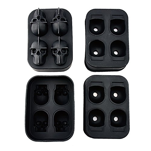 Stritra - 3D Skull Silicone jello Ice Mold Flexible Cube Maker Tray for Halloween and Christmas Party. Best for Whiskey and Cocktails