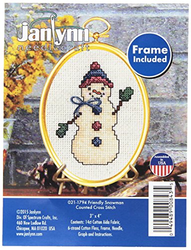 Janlynn 14 Count Friendly Snowman Mini Counted Cross Stitch Kit, 3" by 4"