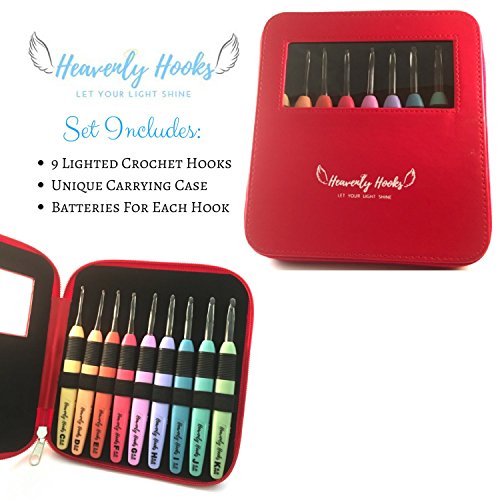 - *BRIGHT LED LIGHT Crochet Hooks / Knitting Needles from Heavenly Hooks. Their lighted tips illuminate your work allowing you to clearly see even the smallest stitches. Makes crafts and sewing so much more enjoyable, fun, and efficient. Everyone will notice how wonderful your creations look.
